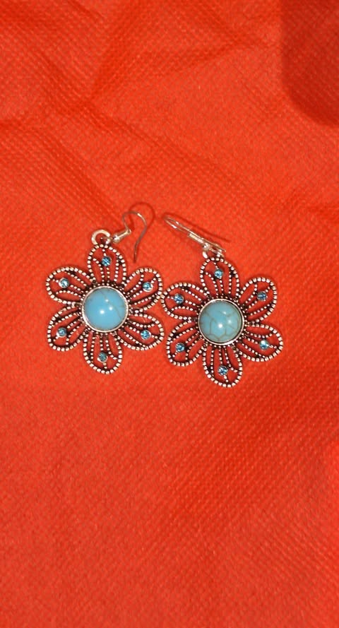 Estes encantadores brincos de flor turquesa exibem um design floral lindamente trabalhado com delicados detalhes em prata. A conta turquesa central adiciona um toque de cor, trazendo uma sensação fresca e vibrante, perfeita para qualquer estação.